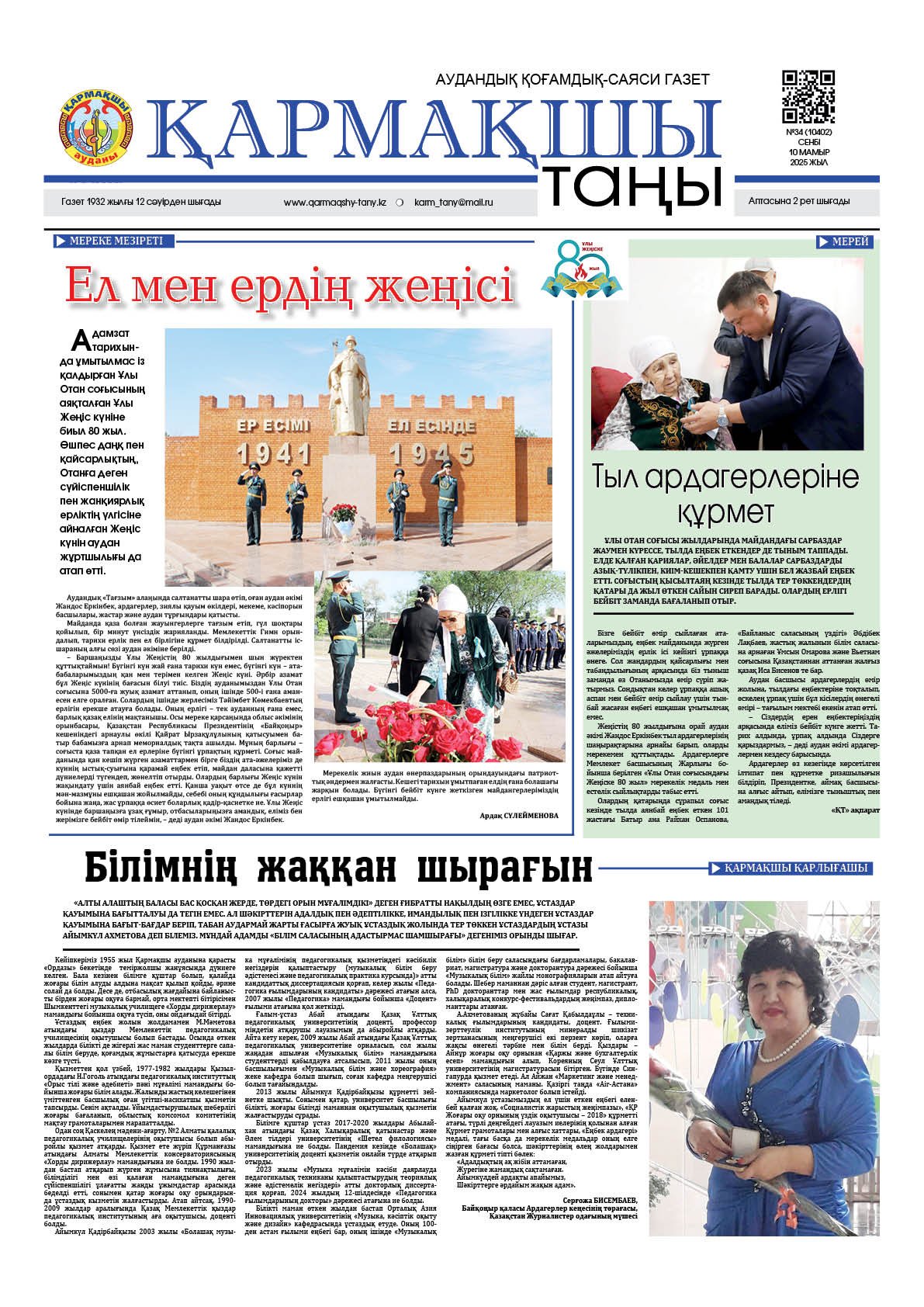 1941-1945 жылдардағы Ұлы Отан соғысы еліміздің тарихындағы ең ауыр да күрделі кезең болды. Қазақстаннан миллионнан аса қан майданға аттанған жауынгерлердің арасында біздің қармақшылық жерлестеріміз де от пен оқтың ортасында шайқасып, ерлік істерін көрсетті. Олардың қатарында ауданымыздың қадірменді ақсақалы,...