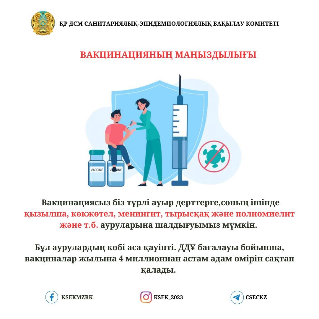 Жұқпалы аурулардың алдын алу – халық денсаулығын сақтау саласындағы басым бағыттардың бірі. Осы орайда профилактикалық екпелердің рөлі ерекше. Вакцинация қауіпті инфекциялардан қорғаныс қалыптастырып, аурудың асқыну және өлім-жітім қаупін едәуір төмендетеді.