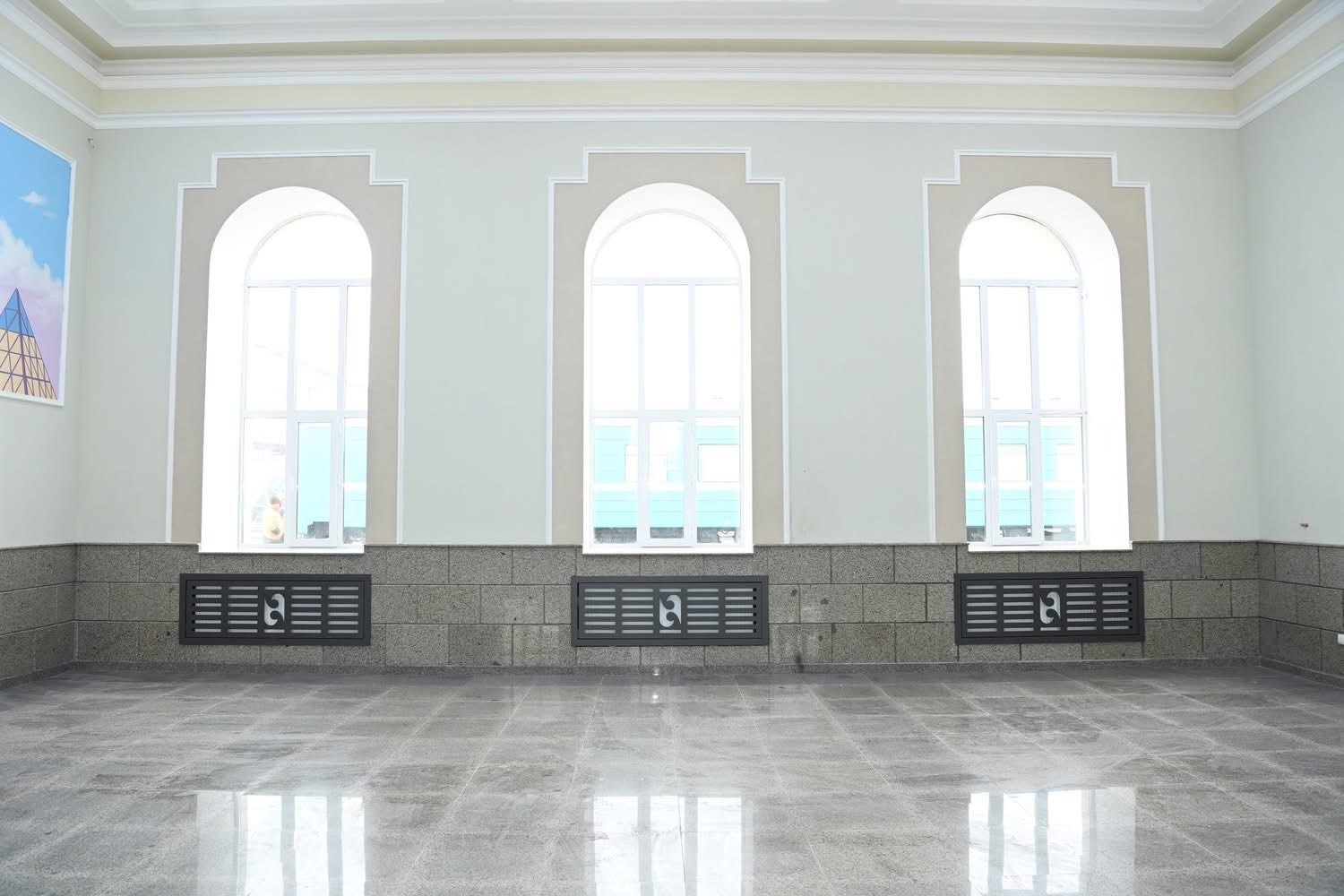 Сексеуіл теміржол вокзалында қатты травертинмен қаптау, кафель төсеу, есіктер орнату, ішкі қабырғаларды әрлеу жұмыстары қарқын алған.