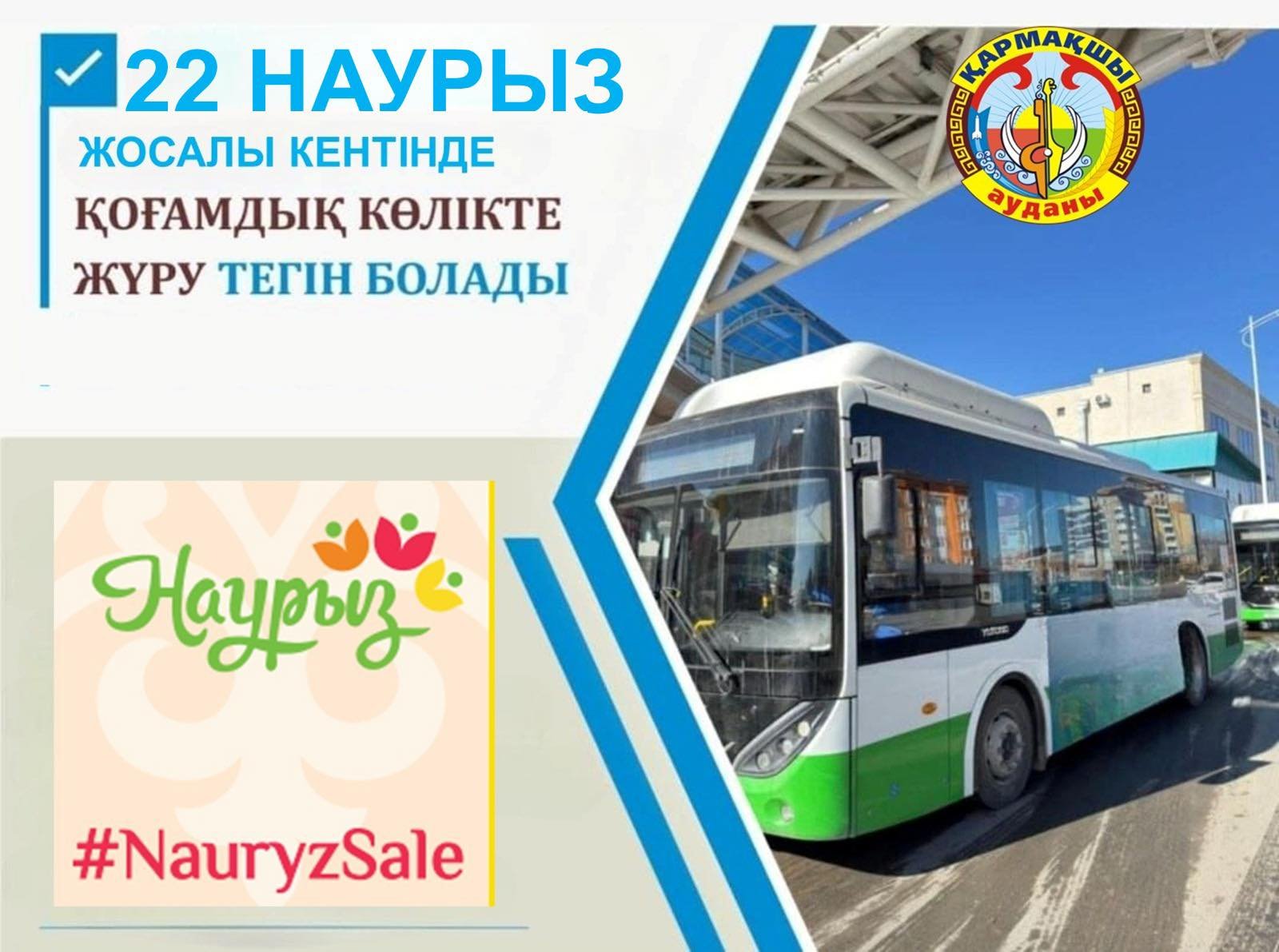 ҚОҒАМДЫҚ КӨЛІКТЕР ТЕГІН ҚАТЫНАЙДЫ 22 наурыз – Ұлыстың ұлы күні әз Наурыз мерекесіне орай Жосалы кентінде қоғамдық көлікпен жүру тегін болады.Автобустар таңғы сағат 07:00-ден бастап қатынайды.Қармақшы Ауданы Жаңалықтар 21 наурыз 2026 ж. 47 0